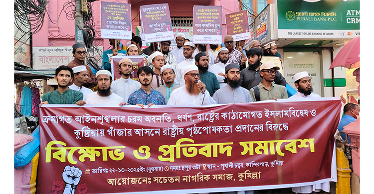 কুমিল্লায় নাগরিক সমাজের প্রতিবাদ সমাবেশ