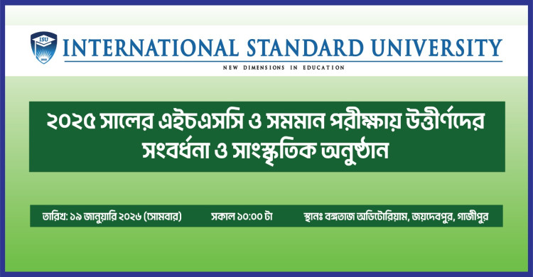 গাজীপুরে আইএসইউ’র উদ্যোগে এইচএসসি ও সমমান উত্তীর্ণ শিক্ষার্থীদের বর্ণিল সংবর্ধনা ১৯ জানুয়ারি
