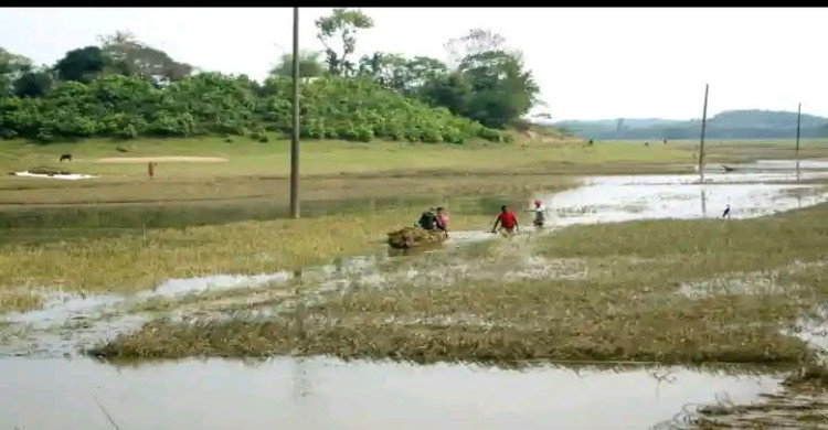 নেত্রকোণায় শিলাবৃষ্টি ও উজানের পানিতে হাওরের ধান তলিয়ে যাওয়ার আশঙ্কায় দিশেহারা কৃষক