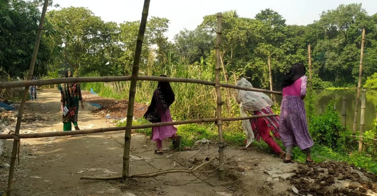 ধামরাইয়ে রাধা গোবিন্দ মন্দিরের রাস্তায় বাঁশের বেড়া, চলাচলে বিঘ্ন