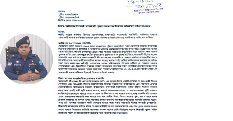 মনোহরদী থানার ওসি দুলাল আকন্দের বিরুদ্ধে আইজিপির কাছে অভিযোগ