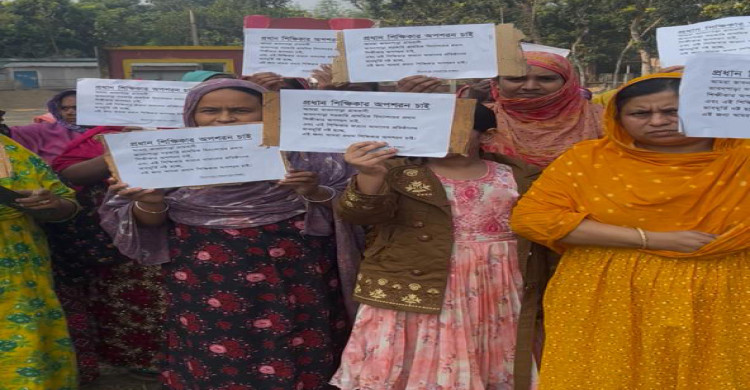 শিক্ষকের অপসারণের দাবিতে বিনোদপুরে মানববন্ধন