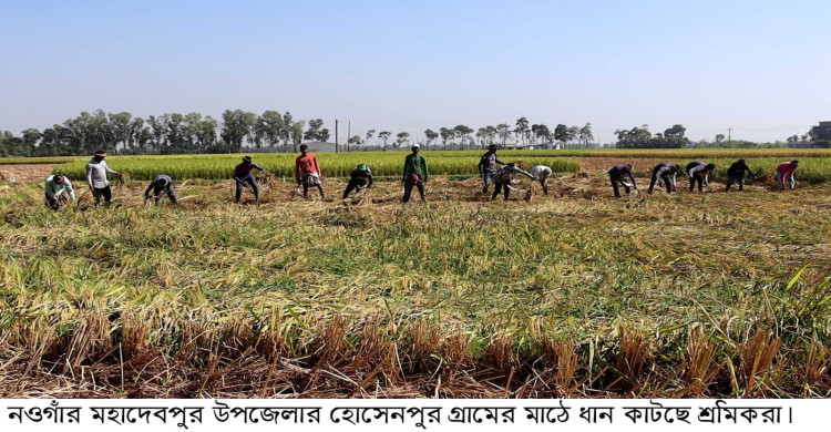 নওগাঁয় ধান কাটা-মাড়াইয়ে ব্যস্ত কৃষক