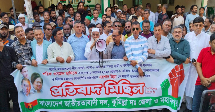 ওসমান হাদীর ওপর সন্ত্রাসী হামলার প্রতিবাদে কুমিল্লায় বিএনপির বিক্ষোভ