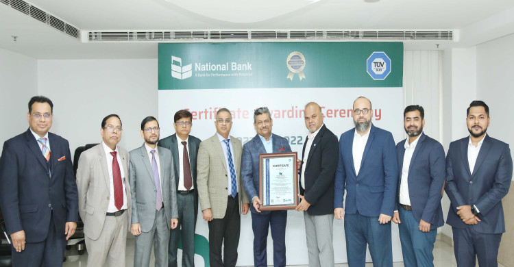 ন্যাশনাল ব্যাংকের আইএসও সার্টিফিকেশন অর্জন