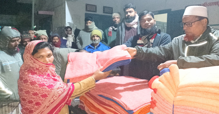 ভোলাহাট সদর ইউনিয়নে শীতার্তদের মাঝে কম্বল বিতরণ
