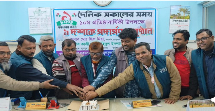 দৈনিক সকালের সময়ের প্রতিষ্ঠাবার্ষিক উপলক্ষে মুকসুদপুর প্রেসক্লাবে আলোচনা সভা ও কেক কর্তন