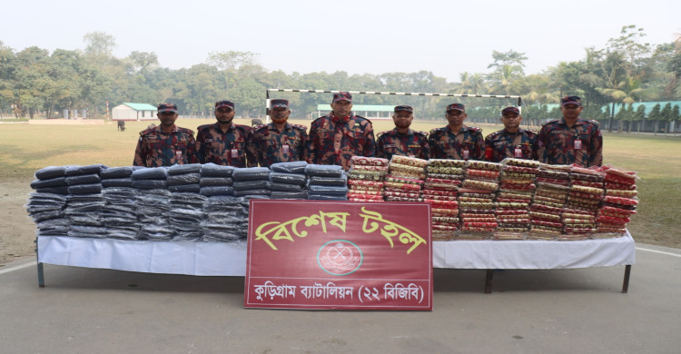 কুড়িগ্রামে বিজিবির বিশেষ অভিযানে ৪২ লাখ টাকার ভারতীয় মালামাল জব্দ