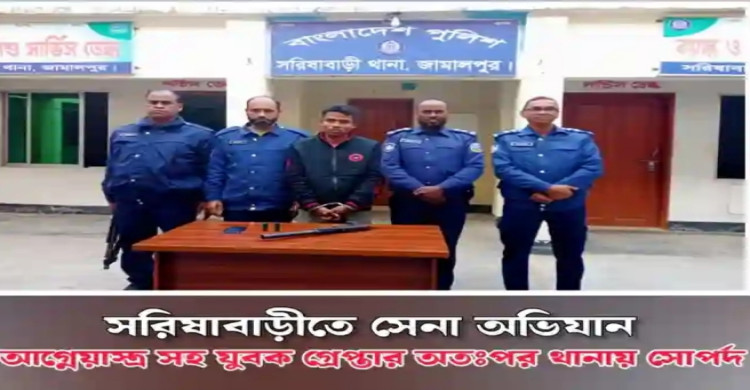 সরিষাবাড়ীতে সেনা অভিযানে শর্টগান ও গুলিসহ যুবক আটক