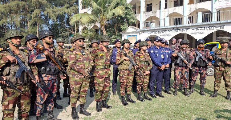 ত্রয়োদশ জাতীয় সংসদ নির্বাচন সুষ্ঠু ও নিরপেক্ষ করার লক্ষ্যে নোয়াখালীতে যৌথ বাহিনীর মহড়া