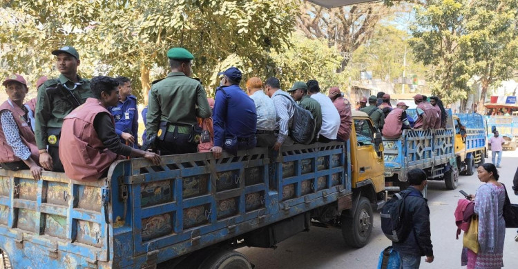 গাইবান্ধার দুর্গম চরাঞ্চলে যাচ্ছে ভোটের সরঞ্জাম, ফুলছড়ির বালাসীঘাট থেকে যাত্রা