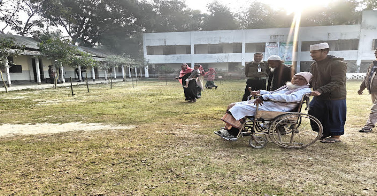 হুইলচেয়ারে ভর করেও গণতন্ত্রের টানে ভোটকেন্দ্রে ৯৭ বছরের বৃদ্ধ
