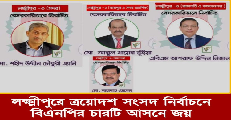 লক্ষ্মীপুরের ৪ আসনেই বিএনপির জয় ১২৮০২ ভোট বেশি পেয়ে জয় পেলেন এ্যানি