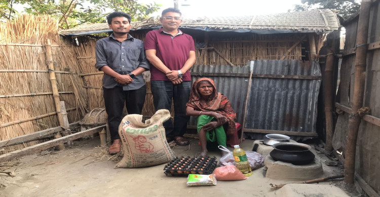 রায়গঞ্জে অসহায় বৃদ্ধার পাশে দাঁড়ালেন স্বেচ্ছাসেবী ও সাংবাদিক