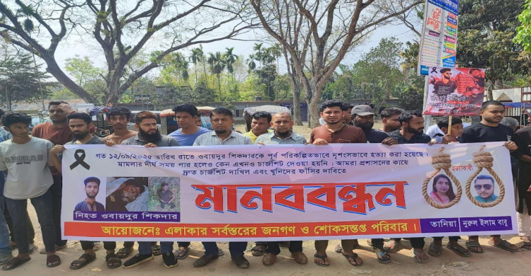 কাশিয়ানীতে ওবায়দুর সিকদার হত্যার প্রতিবাদে মানববন্ধন, দোষীদের গ্রেফতার ও দৃষ্টান্তমূলক শাস্তির দাবি
