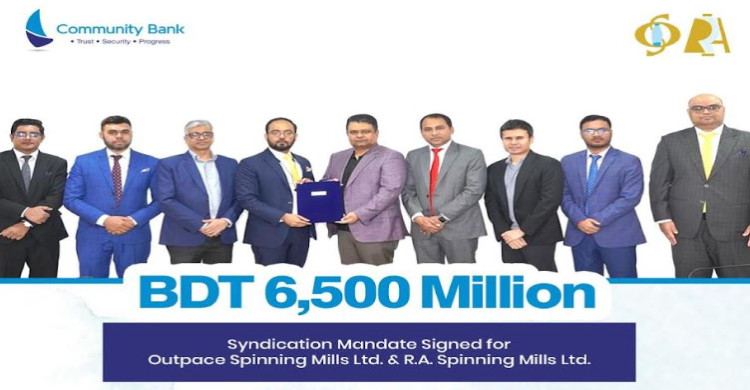 আর.এ. স্পিনিং ও আউটপেস স্পিনিং মিলসের জন্য ৬৫০ কোটি টাকার সিন্ডিকেটেড ফাইন্যান্সিং এর ব্যবস্থা করবে কমিউনিটি ব্যাংক