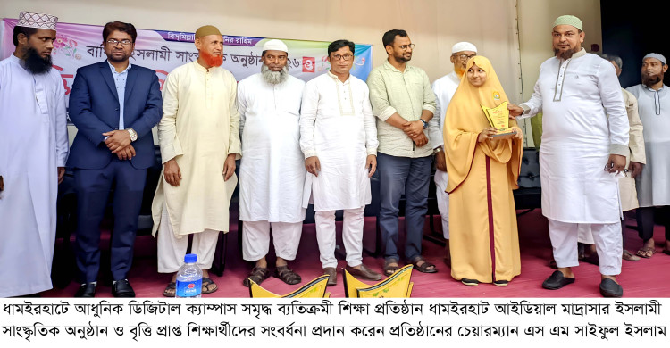 ধামইরহাটে আইডিয়াল মাদরাসার ইসলামী সাংস্কৃতিক অনুষ্ঠান ও বৃত্তিপ্রাপ্ত শিক্ষার্থীদের জমকালো আয়োজনে সংবর্ধনা