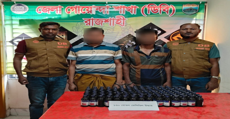 রাজশাহীর ডিবি পুলিশ কর্তৃক ১৩০ বোতল ফেন্সিডিলসহ ২ জন গ্রেফতার