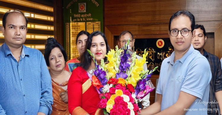 মাগুরা এলজিইডিতে তাসমিন আক্তারকে ফুলেল শুভেচ্ছা