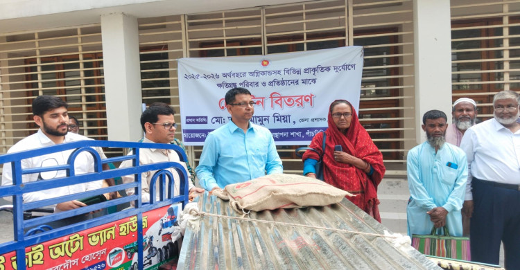 পাঁচবিবিতে ক্ষতিগ্রস্ত পরিবারের মাঝে ঢেউটিন বিতরণ