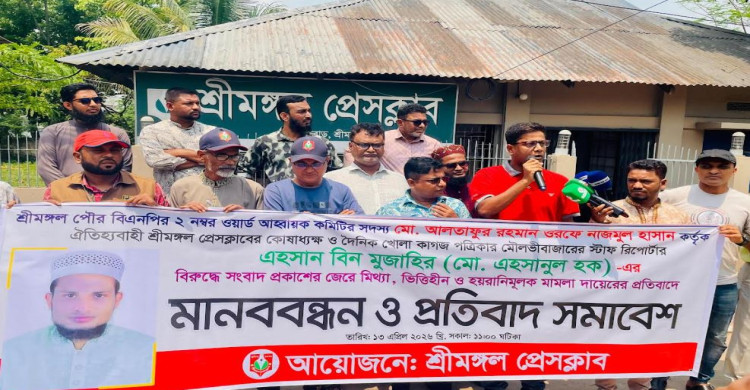 শ্রীমঙ্গলে সাংবাদিকের বিরুদ্ধে মামলা প্রত্যাহারের দাবিতে মানববন্ধন
