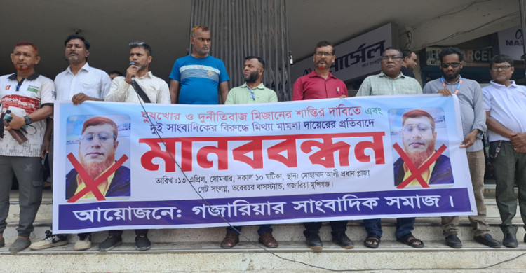 সাংবাদিকের বিরুদ্ধে মিথ্যা মামলার প্রতিবাদে গজারিয়ায় সাংবাদিক সমাজের মানববন্ধন