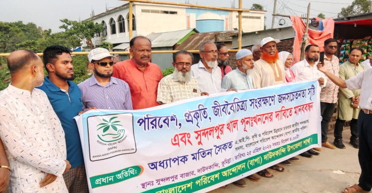 পরিবেশ প্রকৃতি জীববৈচিত্র্য সংরক্ষণ ও সুন্দলপুর খাল পূনঃখনের দাবিতে মানববন্ধন