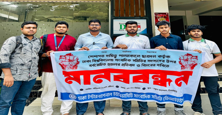ঢাবিতে সাংবাদিকদের ওপর হামলার প্রতিবাদে ডিআইইউ সাংবাদিক সমিতির মানববন্ধন