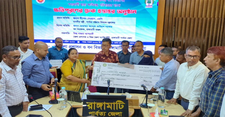 বন্য হাতির আক্রমণে ক্ষতিগ্রস্ত পরিবারের মাঝে চেক তুলে দিলেন মন্ত্রী দীপেন দেওয়ান