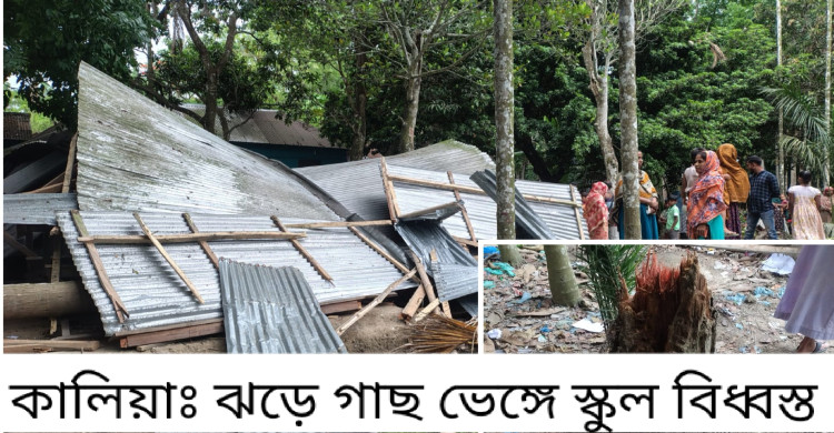 কালিয়ায় স্কুল ঘরে গাছ পড়ে ২ শিক্ষার্থী আহত