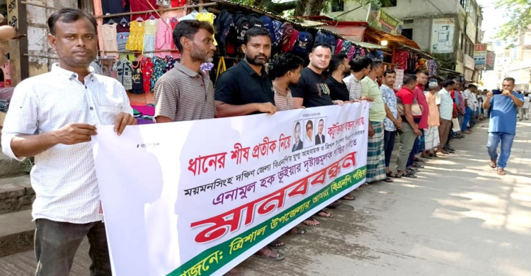 ত্রিশালে ধানের শীষ প্রতীক নিয়ে কটুক্তির প্রতিবাদে মানববন্ধনে দৃষ্টামূলক শাস্তির দাবী কর্মী-সমর্থকদের