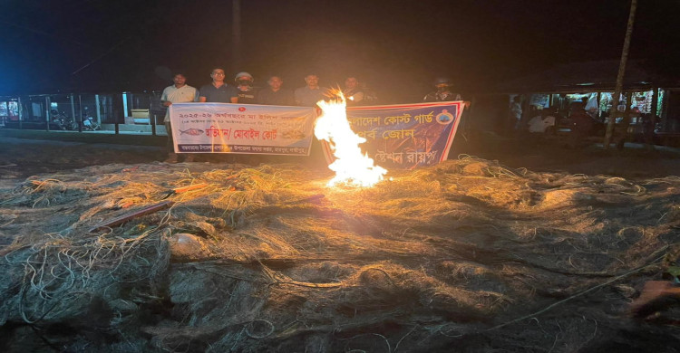 রায়পুর উপজেলা নির্বাহী অফিসারের মেঘনা নদীতে অভিযান নিষিদ্ধ কারেন্ট জাল, ইলিশ জব্দ