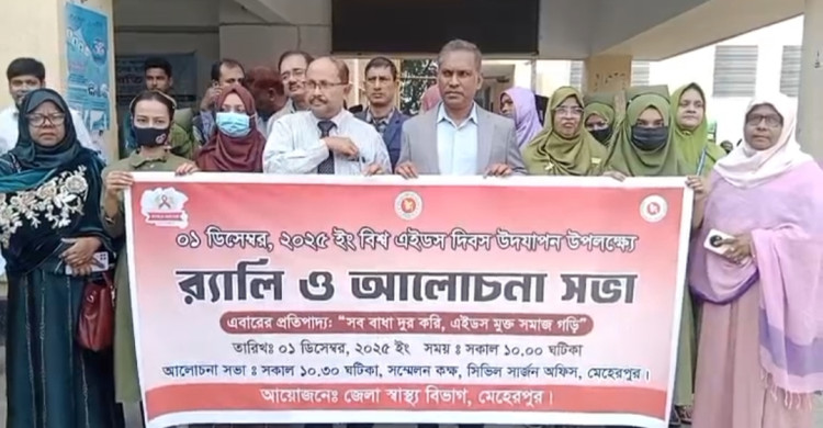 মেহেরপুরে " বিশ্ব এইডস " দিবস উপলক্ষে র্যালি ও আলোচনা সভা অনুষ্ঠিত