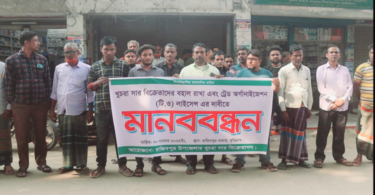 রাজিবপুরে খুচরা সার বিক্রেতাদের বহাল রাখার দাবিতে মানববন্ধন ও স্মারকলিপি প্রদান