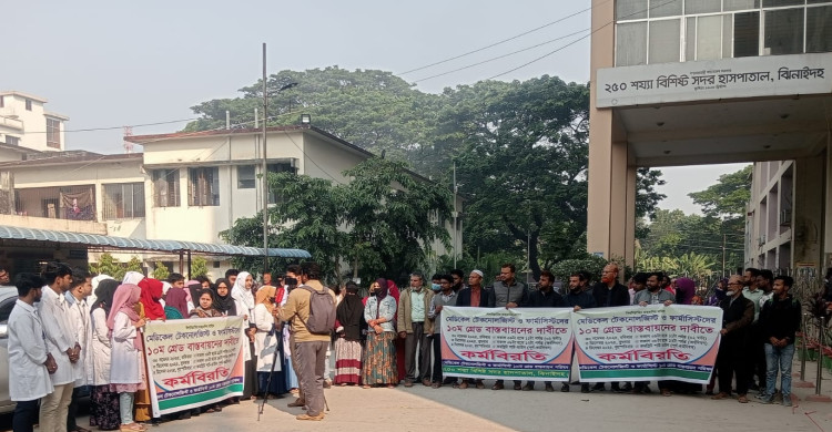 ১০ম গ্রেড বাস্তবায়নের দাবিতে ঝিনাইদহে মেডিকেল টেকনোলজিস্টদের কর্মবিরতি