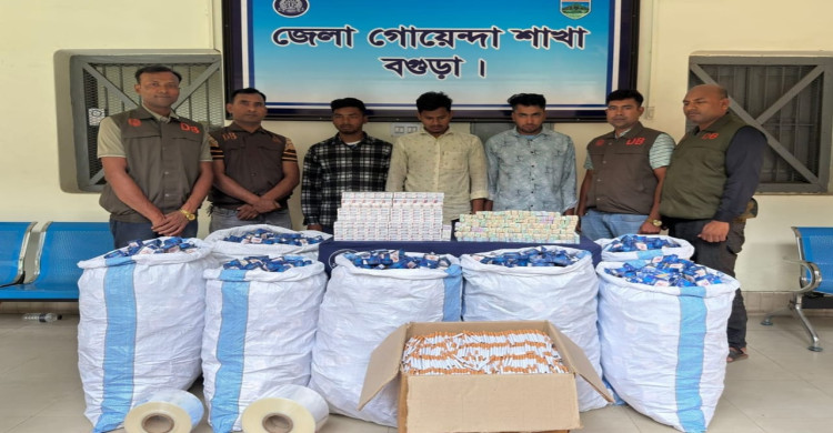 বগুড়ায় অবৈধ কারখানা থেকে ৬৫ লাখ টাকার নকল সিগারেট জব্দ