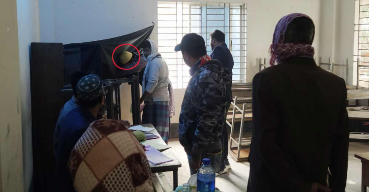 সাভারে ব্যালট পেপারে সিল মারছেন নৌকার এজেন্ট