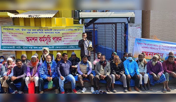 বেসরকারি জুট মিল শ্রমিকদের খুলনা প্রেসক্লাবের সামনে অনশন কর্মসূচি পালন