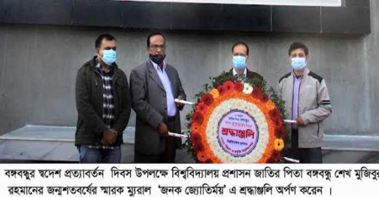 শ্রদ্ধা জ্ঞাপন শেষে উপাচার্য প্রফেসর ড. এম রোস্তম আলী বলেন, বঙ্গবন্ধুর জন্মশতবর্ষ, স্বাধীনতার সুবর্ণজয়ন্তী উদযাপনের পরপরই বঙ্গবন্ধুর স্বদেশ প্রত্যাবর্তন বিশেষভাবে তাৎপর্যময়। বঙ্গবন্ধুর নির্দেশিত পথে বাঙালি ৯ মাসের যুদ্ধ শেষে বিজয় অর্জন করে ১৯৭১ সালের ১৬ ডিসেম্বর। ‘৭২-এর ১০ জানুয়ারি বঙ্গবন্ধু তার স্বপ্নের বাংলায় পা রাখার মধ্যদিয়ে চূড়ান্ত বিজয় অর্জিত হয়েছিল।