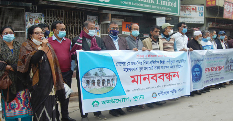 দেশের প্রথম অঙ্কন শিক্ষাপ্রতিষ্ঠান প্রত্নতত্ত্ব বিভাগ কর্তৃক সংরক্ষণের দাবিতে খুলনায় মানববন্ধন