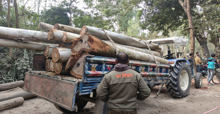 রাতে বন বিভাগের গাছ কেটে সকালে ছিনতাই