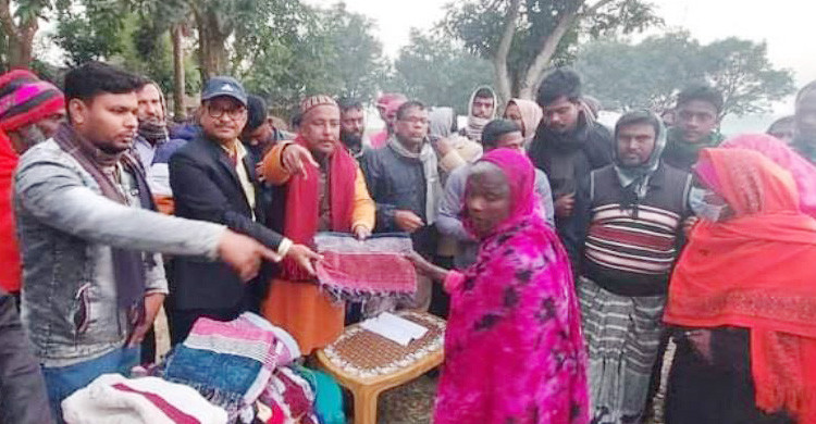 তানোরের সরনজাই ইউপিতে চেয়ারম্যান ময়নার শীতবস্ত্র প্রদান