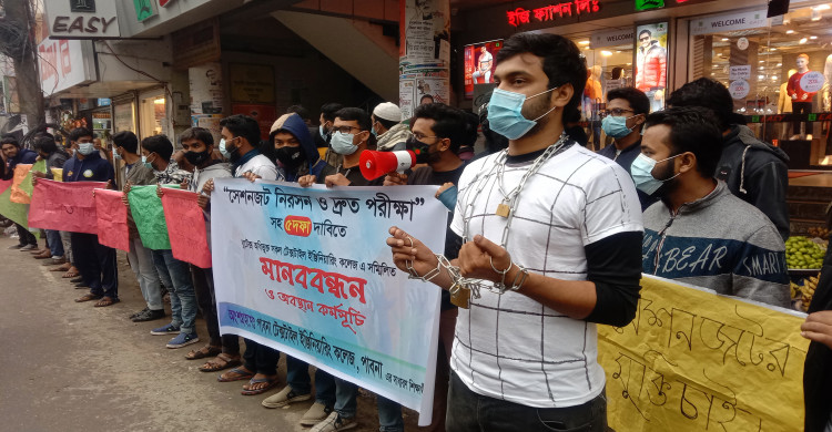 সেশনজট নিরসন ও দ্রুত পরীক্ষা নেয়াসহ পাঁচ দফা দাবিতে পাবনায় মানববন্ধন