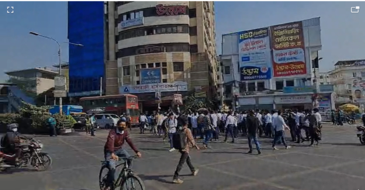শিক্ষার্থীর মৃত্যুর ঘটনায় তেজগাঁও কলেজের শিক্ষার্থীদের ফার্মগেট অবরোধ