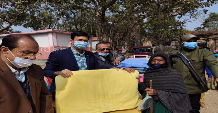 তানোরে দরিদ্রদের মাঝে প্রধান মন্ত্রীর কম্বল বিতরণ করলেন ইউএনও