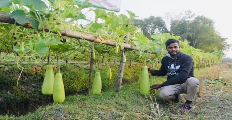 লাউয়ের নাম সুলতানা অল্প সময়ে বাম্পার ফলন