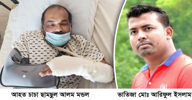 হাসপাতালে চিকিৎসাধীন ছামছুল আলম বলেন, গত বৃহস্পতিবার (৩ ফেব্রুয়ারি) বেলা সাড়ে ১১টার সময় আমি বাইসাইকেল যোগেন বাজারে জাবার উদ্দেশ্যে রওনা হই। এমন সময় আমার ভাতিজা আরিফুল ইসলাম (২৮) অতর্কিতভাবে আমার উপর হামলা চারিয়ে এলাপাতারী ভাবে হাতুড়ি পেটা করে পালিয়ে যায়।পরে আমি জানতে পারি আমার ভাই লুৎফর রহমান তার ছেলে আরিফুল ইসলামকে বিদেশ (ইতালি) পাঠানোর জন্য আমার মেয়ের জামাই ইটালি প্রবাসী হযরত প্রামাণিকের নিকট টাকা দেয়। আরিফুলকে বিদেশ নেয়ায় দেরি হওয়ায় আমার ভাই লুৎফরের নির্দেশে আমাকে মারপিট করে আরিফুল ইসলাম।