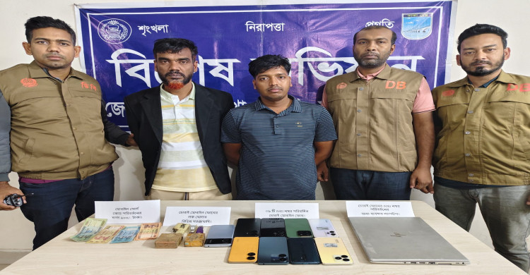 ঢাকা উত্তর ডিবি পুলিশের অভিযানে ফোনের লক খোলার সরঞ্জামাদি ও নগদ অর্থসহ ২ জন গ্রেফতার