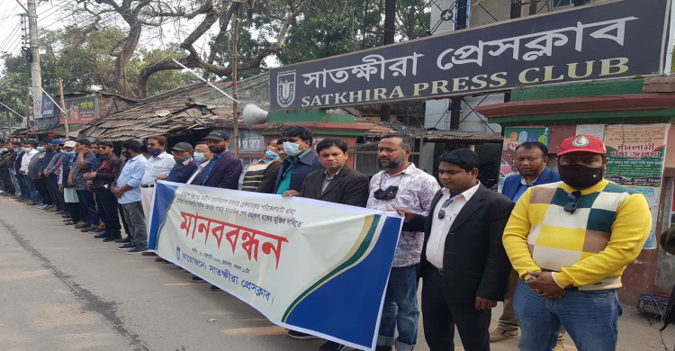 সাতক্ষীরায় সাংবাদিক গ্রেপ্তারের প্রতিবাদে মানববন্ধন