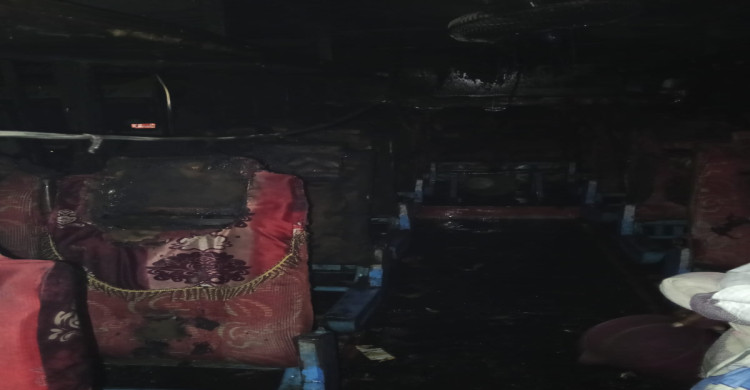 নোয়াখালীতে টার্মিনালে দাড়িয়ে থাকা বাসে আগুন